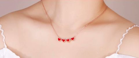 Die Halskette verwandelt sich nicht nur leicht von einem vierblättrigenKleeblatt in eine ReihevonHerzen, jede Seite hat eine andereFarbe: eine Seite ist blau und eine Seite ist rot!