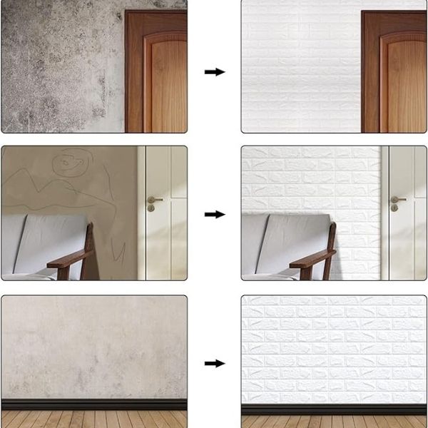 Seien Sie kreativ bei der Gestaltung Ihres Dekors, indem Sie BRICKSBY-Platten in einzigartige Formen und Muster schneiden. Die selbstklebende Rolle vereinfacht den Installationsprozess. Passen Sie die Form einfach an die gewünschte Größe an, ziehen Sie die Schutzfolie ab, und verwandeln Sie Ihren Raum mühelos in ein wunderschön renoviertes Reich. Perfekt für Akzentwände, TV-Hintergründe, Wohnzimmer, Schlafzimmer und vieles mehr!