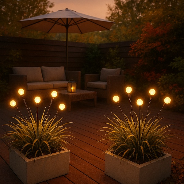 Da sie mit Solarenergie betrieben werden, benötigen Sie keine Kabel, Batterien oder Steckdosen. Platzieren Sie sie einfach, wo Sie möchten, und genießen Sie die Atmosphäre.